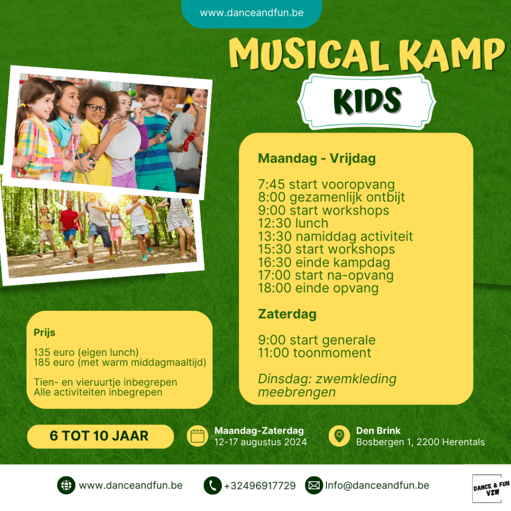 Het aantal plaatsen is beperkt, dus zorg ervoor dat je er snel bij bent! We kunnen niet wachten om jou te verwelkomen op ons Musical Kamp en samen een onvergetelijke week vol plezier en creativiteit te beleven!