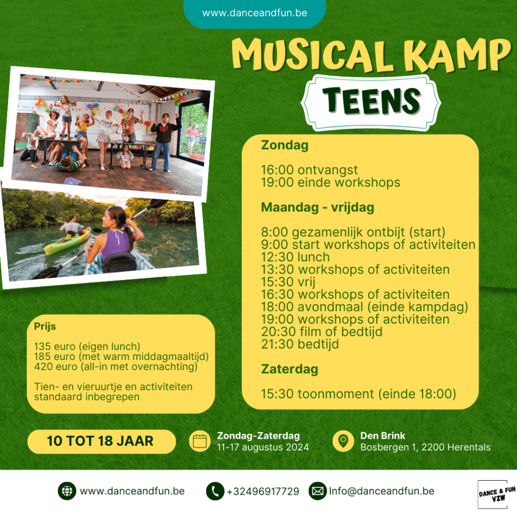 Wacht niet langer en schrijf je nu in voor het Musical Kamp in Brink Herentals! Of je nu al ervaring hebt op het gebied van musicals of gewoon nieuwsgierig bent naar deze kunstvorm, ons kamp biedt de ideale omgeving om jezelf uit te dagen en te groeien.
